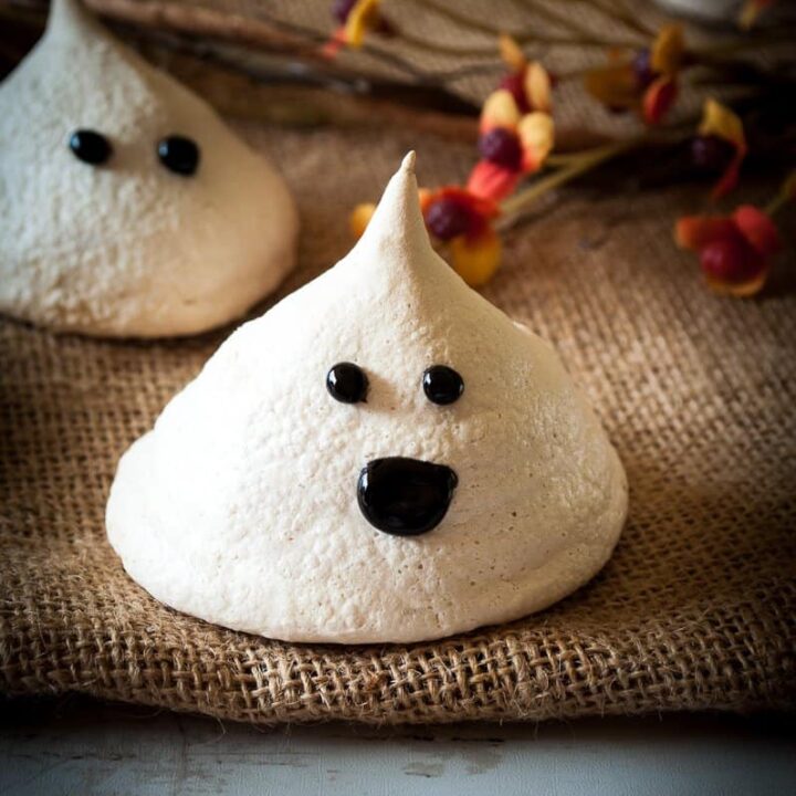 While meringues aren't technically cookies, you still have to bake them, so they're not too far off 😄 Thee cute vegan Halloween meringue ghosts are made with whipped aquafaba (the liquid from a can of beans). Make their faces with black frosting gel or melted dark chocolate.
