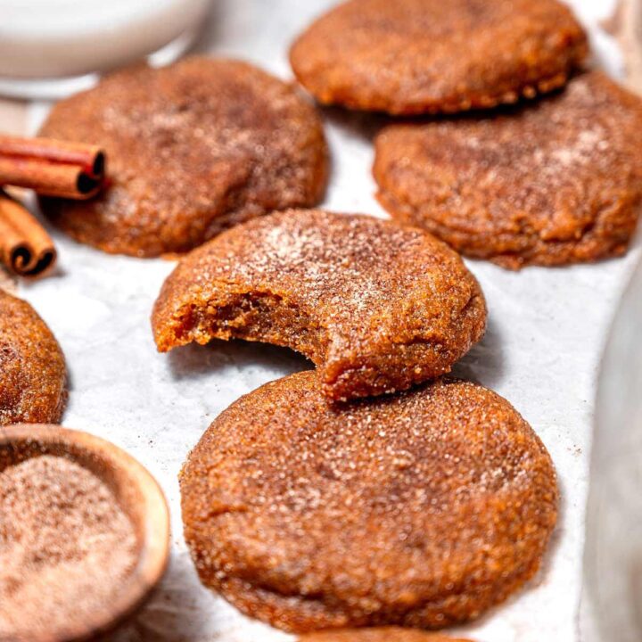 These simple vegan pumpkin spice cookies may not be that spooky, but they'll still be welcome as a sweet Halloween treat. They're fudgy on the inside, chewy on the outside, with a hint of crunch from the dusting of cinnamon sugar.