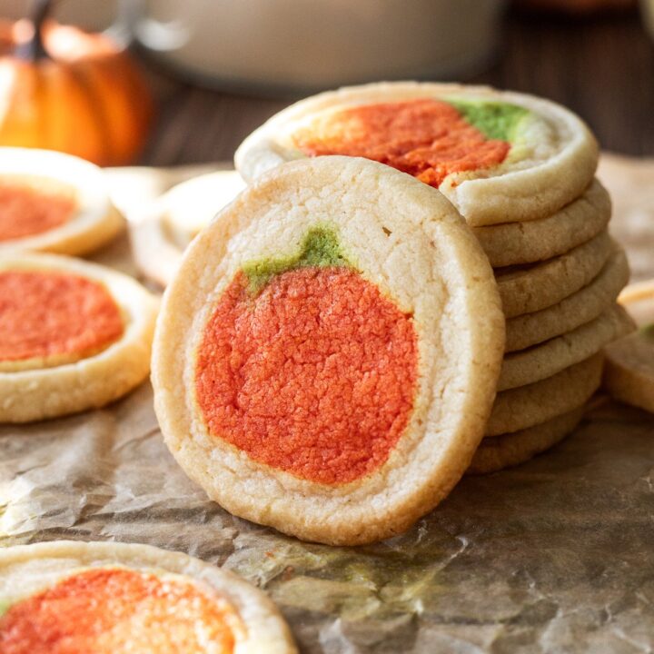 You'll have a blast making these fun sugar cookies that look and taste just like the famous Pillsbury pumpkin cookies! The recipe author shows you how to make a "slice'n'bake" cookie dough log that you can freeze in advance, then cut it into circles and bake whenever you're ready.