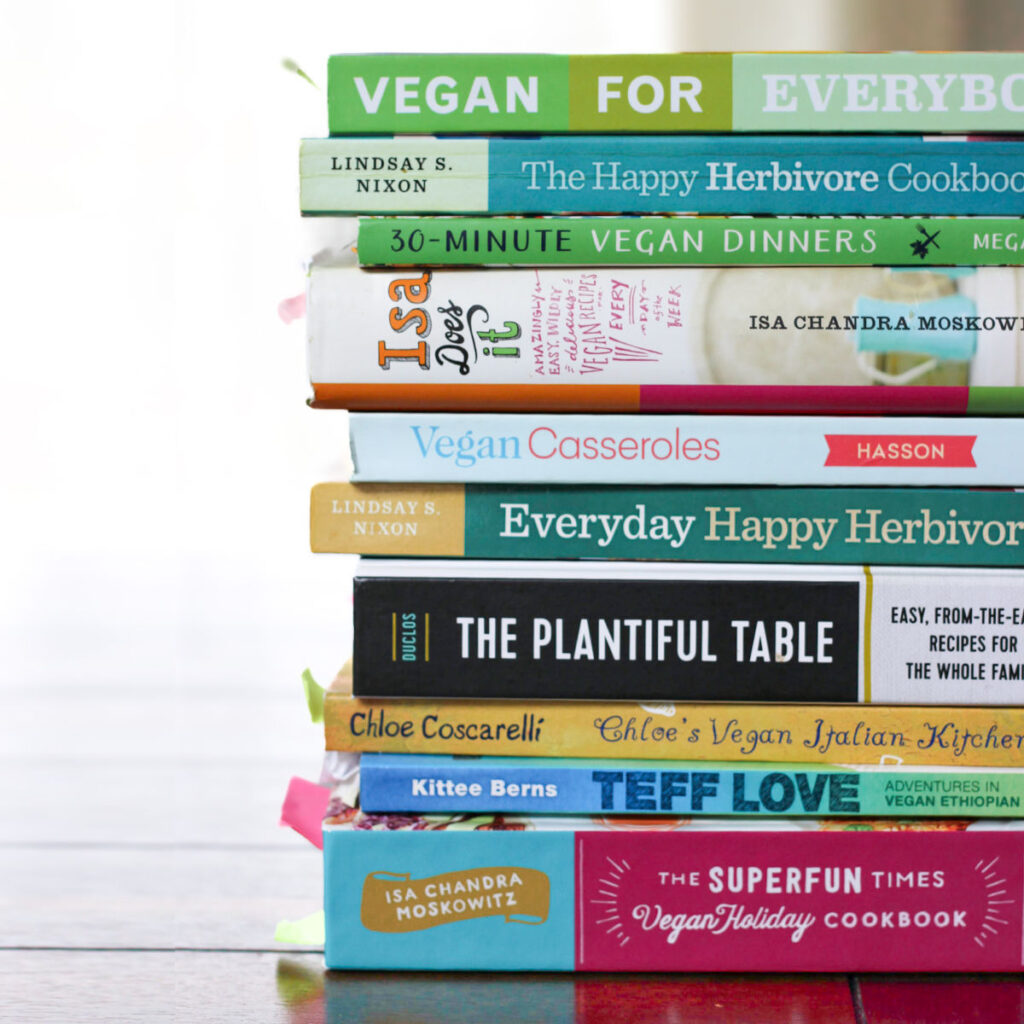 Without further ado, here’s my list of 10 best vegan cookbooks from my vegan recipe book collection, in no particular order: