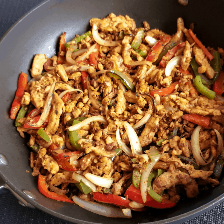 Vegan Fajita Filling with Soy Curls, Peppers and Onions