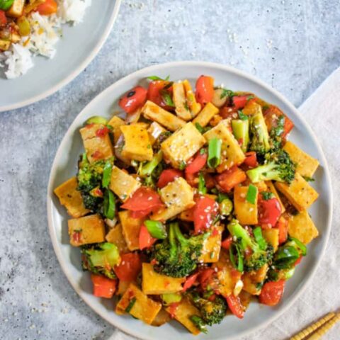 I mean, what[s not to love? It's got lots of texture thanks to broccoli, peppers, onions, and crispy tofu, and a lovely, sweet sauce with just a hint of spice. Better yet, the sauce is super easy to make with just 5 ingredients (+ water).