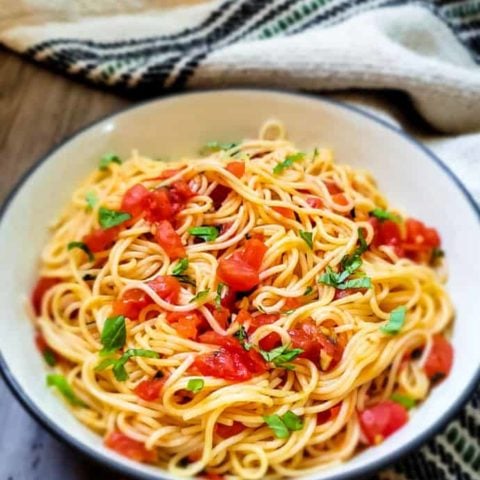 This vegan bruschetta pasta is one of the quickest recipes from the blog, taking only about 10 minutes to make.