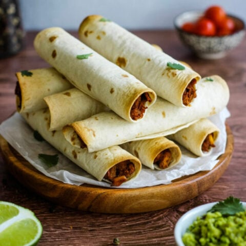 The bean filling is also great for meal prep: it can be made in advance, and then used in these taquitos, as well as in burritos, burrito bowls, and even sandwiches.