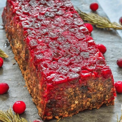 This cranberry-topped mushroom and lentil loaf will become a showstopper on your Christmas table. A variety of veggies, lentils, and spices make it a delicious and wholesome entree option.