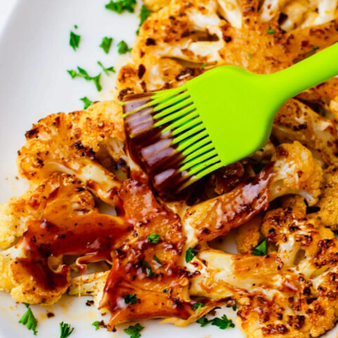 Don't want to make a whole cauliflower? Make cauliflower steaks instead! These roasted BBQ cauliflower steaks are made with just 5 ingredients. A great vegan Christmas dinner main course idea for smaller holiday dinner parties.