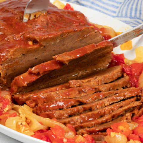 Juicy, tender, and satisfying, this Vegan Brisket is a perfect dinner main or holiday centerpiece. Slow roasted so it’s fork-tender, this seitan brisket will have vegans and non-vegans raving.