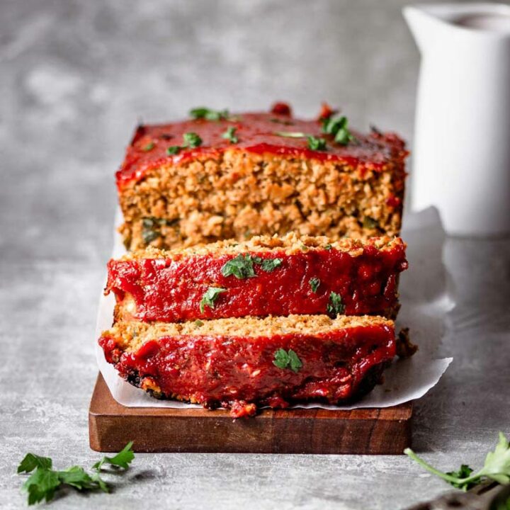 This delicious homemade seitan turkey roast is made with herbs and spices, and has a sliceable, meaty texture. The flavorful three-ingredient savory-sweet glaze really takes this seitan roast to the next level!